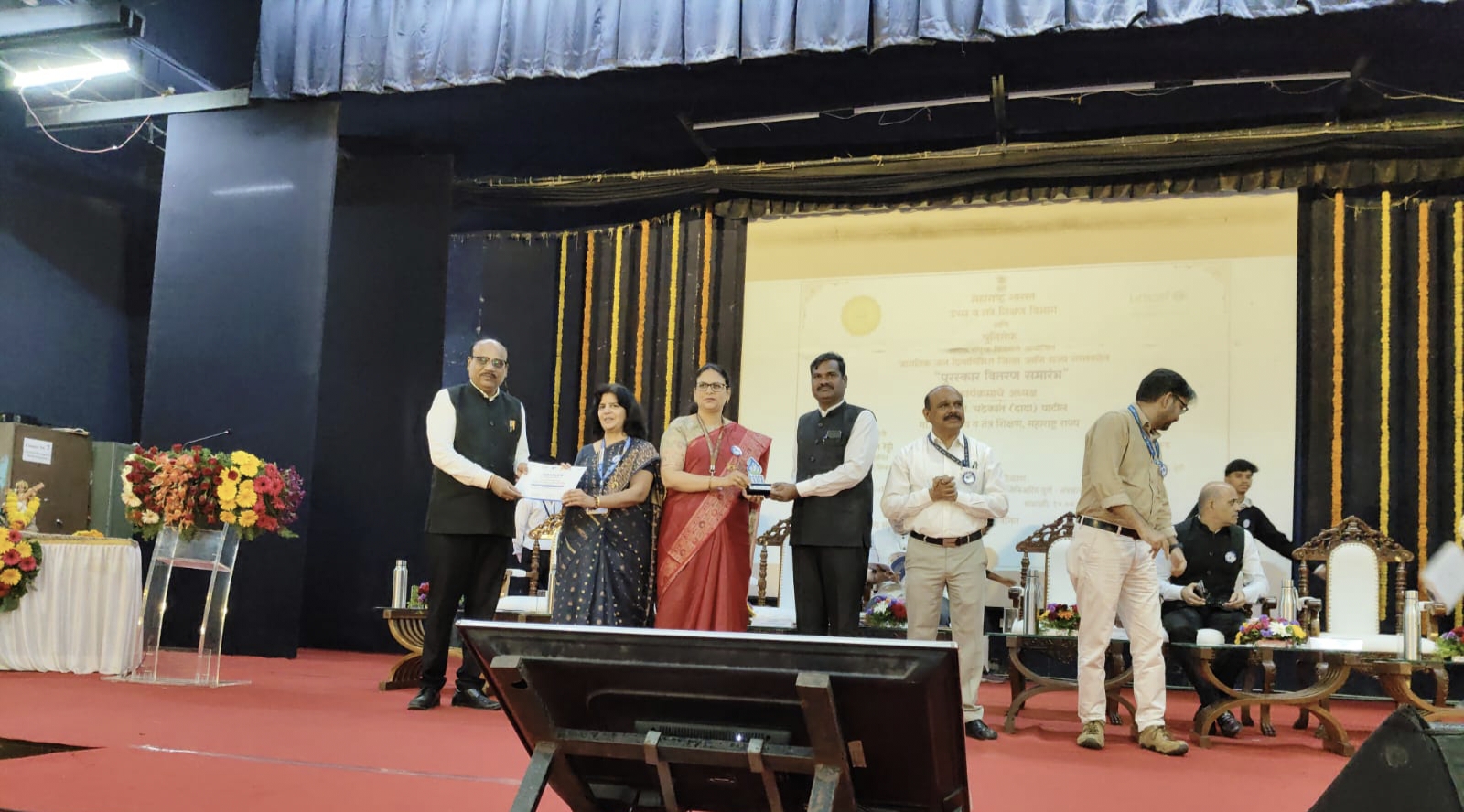 जाफराबाद : प्रतिनिधी सिद्धार्थ महाविद्यालयाच्या ग्रीन क्लब विभागास शैक्षणिक वर्ष 2024- 25 करिता युनिसेफ व महाराष्ट्र शासन यांच्या वतीने जिल्हास्तरीय पुरस्काराने सन्मानित करण्यात आले .दिनांक 29 सप्टेंबर 2025 रोजी तंत्रज्ञान विद्यापीठ शिवाजीनगर ,पुणे येथे माननीय उच्च व तंत्र शिक्षण मंत्री नामदार चंद्रकांत दादा पाटील उच्च व तंत्र शिक्षण संचालक माननीय शैलेंद्रजी देवळाणकर ,तंत्रज्ञान विद्यापीठ पुणे चे कुलगुरू डॉ. बिरोटे व युनिसेफ चे अधिकारी डॉ.मुस्तजीर यांच्या हस्ते पुरस्कार वितरण समारंभ घेण्यात आला. यावेळी सिद्धार्थ महाविद्यालयाच्या ग्रीन क्लब विभागास एकूण तीन पुरस्कार प्राप्त झाले.यात जिल्हास्तरीय उत्कृष्ट ग्रीन क्लब फॅकल्टी कॉर्डिनेटर पुरस्कार प्राध्यापक मनीष बनकर, ग्रीन क्लब समन्वयक यांना देण्यात आला. जिल्हास्तरीय उत्कृष्ट पाणी बचतीचा शॉर्ट व्हिडिओ चा जिल्हास्तरीय प्रथम पुरस्कार ग्रीन क्लब विभागास प्राप्त झाला. तसेच पाणी बचतीचे महत्त्व असलेल्या पोस्टरला जिल्हास्तरीय प्रथम पारितोषिक कु. मेहेक इराम बी.एससी द्वितीय वर्षाच्या विद्यार्थिनीला देण्यात आला. शैक्षणिक वर्ष 2024 -25 करिता पर्यावरण, पाणी बचतीचे महत्व व प्रदूषण या विषयावर वेगवेगळ्या माध्यमातून महाविद्यालयाच्या वतीने विद्यार्थी आणि समाज यांच्यामध्ये जनजागृती करण्याचे काम करण्यात आले होते.या कार्याची दखल राज्य शासन व युनिसेफ यांनी घेतली.त्या कारणास्तव सिद्धार्थ महाविद्यालयास हे पुरस्कार देण्यात आले. हे सर्व पुरस्कार उच्च व तंत्र शिक्षण मंत्री माननीय चंद्रकांत दादा पाटील, उच्च व तंत्र शिक्षण संचालक डॉ .शैलेंद्रजी देवळांकर ,युनिसेफचे अधिकारी डॉ. मुस्तजीर यांच्या हस्ते महाविद्यालयाचे प्राचार्य डॉक्टर रमेश देशमुख व ग्रीन क्लब समन्वयक प्राध्यापक मनीष बनकर यांनी स्वीकारले. या यशाबद्दल सिल्लोड शिक्षण संस्थेचे संस्थापक अध्यक्ष माननीय दादासाहेब म्हस्के व संस्थेचे सचिव प्रा.डॉ. राहुल म्हस्के यांनी ग्रीन क्लब विभागाचे व महाविद्यालयाचे अभिनंदन केले.