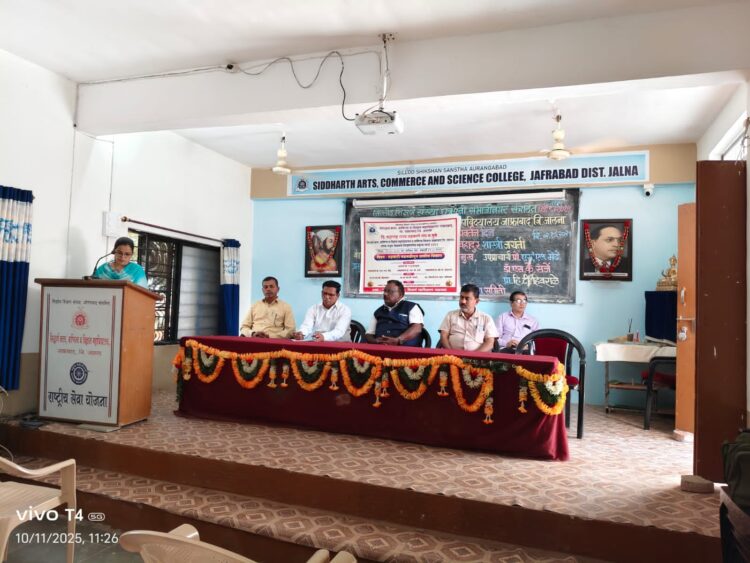 सिद्धार्थ महाविद्यालय, जाफ्राबाद येथे दि. 11 ऑक्टोंबर, 2025 रोजी वाणिज्य विभाग आणि महाराष्ट्र राज्य सहकारी संघ म. पुणे अंतर्गत जिल्हा सहकारी बोर्ड म. जालना यांच्या संयुक्त विद्यमाने “आंतरराष्ट्रीय सहकारी वर्ष 2025” निमित्त जिल्हास्तरीय वक्तृत्व स्पर्धेचे आयोजन मोठ्या उत्साहात करण्यात आले होते.