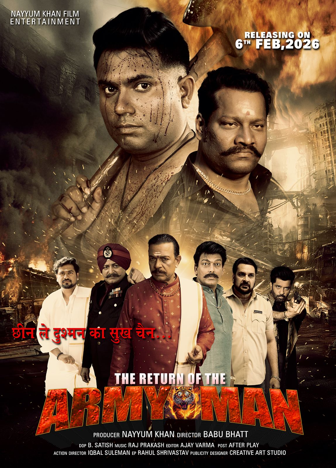 छत्रपती संभाजीनगर – देशभक्ती वर आधारित जो नागरिकांवरील हिंसाराच्या परिणामावर आणि लष्करांकडून मिळालेल्या शक्तिशाली प्रतिसादावर केंद्रित करणारा चित्रपट लवकरच आपल्या भेटीला येत असून नय्युम खान एंटरटेनमेंट प्रस्तुत “द रिटर्न ऑफ द आर्मी मॅन” हिंदी आणि तेलुगू भाषेत हा चित्रपट ६ फेब्रुवारीला जवळच्या सिनेमागृहात प्रदर्शित होणार आहे.
