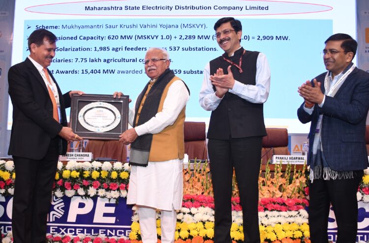 छत्रपती संभाजीनगर : शेतीसाठी वीजपुरवठा करणाऱ्या कृषी वीजवाहिन्यांच्या सौर ऊर्जीकरणात उल्लेखनीय कामगिरी केल्याबद्दल महावितरणचा ऑल इंडिया डिस्कॉम्स असोसिएशनच्या (AIDA) ‘एडिकॉन-2026’ या राष्ट्रीय परिषदेत बुधवारी (21 जानेवारी) पुरस्काराने गौरव करण्यात आला. केंद्रीय ऊर्जामंत्री मनोहर लाल यांच्या हस्ते महावितरणचे अध्यक्ष व व्यवस्थापकीय संचालक लोकेश चंद्र यांना हा पुरस्कार प्रदान करण्यात आला.