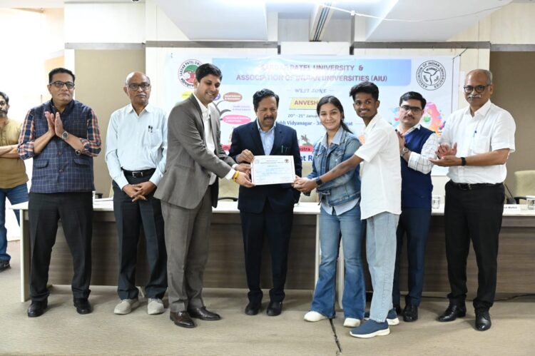 छत्रपती संभाजीनगर, दि. २२ : महात्मा गांधी मिशन विद्यापीठाच्या विद्यार्थ्यांनी अन्वेषण पश्चिम विभाग विद्यार्थी संशोधन अधिवेशन २०२५–२६ मध्ये उल्लेखनीय कामगिरी करत विद्यापीठाच्या नावलौकिकात भर घातली आहे. गुजरात राज्यातील आनंद येथे सरदार पटेल विद्यापीठात पार पडलेल्या या प्रतिष्ठेच्या स्पर्धेत एमजीएम विद्यापीठाच्या तीन संघांनी तृतीय क्रमांक पटकावला असून राष्ट्रीय पातळीवरील स्पर्धेसाठी पात्रता मिळवली आहे. ही राष्ट्रीय स्पर्धा फेब्रुवारी २०२६ मध्ये हिमाचल प्रदेशात होणार आहे.