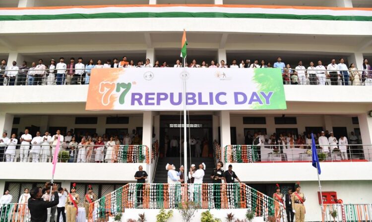 छत्रपती संभाजीनगर, दि. २६ : भारताचा ७७ वा प्रजासत्ताक दिन महात्मा गांधी मिशनच्यावतीने एमजीएम स्टेडियम येथे उत्साहपूर्ण वातावरणात साजरा करण्यात आला. यावेळी बजाज ऑटो लिमिटेड छत्रपती संभाजीनगरचे सीएसआर सल्लागार सी.पी.त्रिपाठी यांच्या शुभ हस्ते ध्वजारोहण करण्यात आले. श्री.त्रिपाठी यांनी ध्वजारोहण झाल्यानंतर उपस्थितांना मार्गदर्शन केले.
