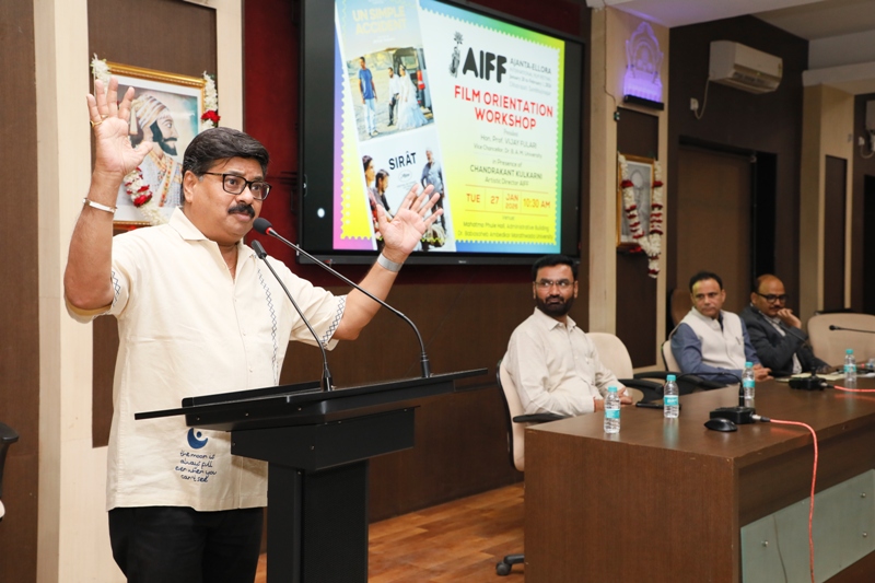 अजिंठा वेरूळ आंतरराष्ट्रीय चित्रपट महोत्सवाच्या पार्श्वभूमीवर सदर कार्यशाळा घेण्यात आल्याचे डॉ.वैâलास अंभुरे यांनी प्रास्ताविकात सांगितले. प्रा.पराग हासे यांनी सूत्रसंचालन तर डॉ.संजय शिंदे यांनी आभार मानले. कार्यशाळे पुर्वी मा.कुलगुरु डॉ.विजय फुलारी यांची भेट घेऊन संवाद साधला. विद्यापीठात ललित कला अकादमी व लोककला महोत्सव या दोन उपक्रमांना मा.कुलगुरु यांच्या कार्यकाळात गती मिळाल्याबद्दल चंद्रकांत कुलकर्णी यांनी समाधान व्यक्त केले.