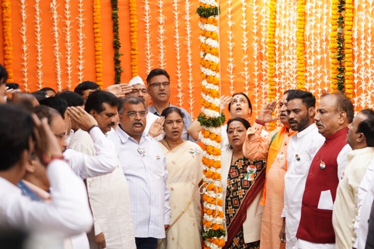 भारतीय जनता पार्टी प्रदेश कार्यालयात 77 व्या प्रजासत्ताक दिनाच्या निमित्ताने भाजपा प्रदेशाध्यक्ष श्री. रविंद्र चव्हाण यांच्या हस्ते सोमवारी ध्वजारोहण तसेच भारतमातेच्या प्रतिमेचे पूजन करण्यात आले. यावेळी आ. श्रीकांत भारतीय, आ.अभिमन्यू पवार, आ.प्रवीण पोटे, महिला मोर्चा प्रदेशाध्यक्ष आ. चित्रा वाघ, प्रदेश मुख्य प्रवक्ते केशव उपाध्ये, प्रदेश सह-मुख्यप्रवक्ता विश्वास पाठक, प्रदेश प्रवक्ता मा. अतुल शाह, दक्षिण मुंबई जिल्हाध्यक्षा शलाका साळवी, प्रदेश मुख्यालय प्रभारी रवींद्र अनासपुरे, ज्येष्ठ नेते बसवराज पाटील, हरिता अग्रवाल, कमलाकर दळवी, प्रदेश कार्यालय सहसचिव भरत राऊत आदी उपस्थित होते.