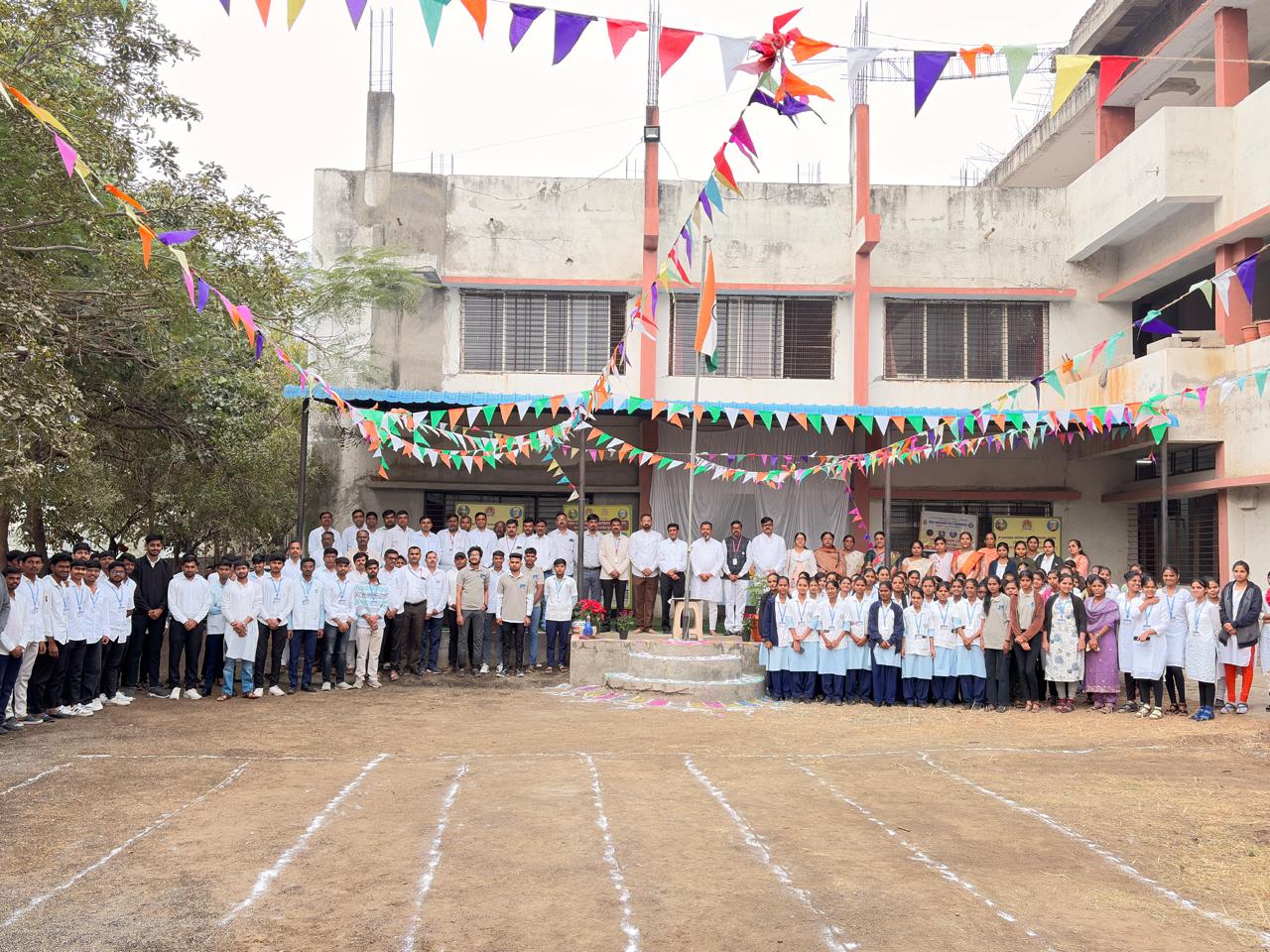 ज दिनांक 26 जानेवारी 2026 रोजी अजिंठा शिक्षण संस्था संचलित पंडित जवाहरलाल नेहरू महाविद्यालय येथे आज 26 जानेवारी 2026 रोजी प्रजासत्ताक दिन साजरा करण्यात आला. याप्रसंगी अजिंठा शिक्षण संस्थेचे सचिव माननीय श्री प्रकाश बाबुरावजी काळे यांच्या हस्ते ध्वजारोहण करण्यात आले. प्रमुख अतिथी म्हणून अजिंठा शिक्षण संस्थेचे संचालक माननीय शिवदीप रंगनाथ काळे हे उपस्थित होते. याप्रसंगी प्र .प्राचार्य डॉ. पंडित शेषराव नलावडे, उत्तमरावजी पाटील नर्सिंग महाविद्यालयाचे प्राचार्य डॉ.अन्वरसाब नरेगल, उप प्राचार्य रविकुमार गोटेड, डॉ .प्रशांत हिरेमठ,श्री.जय सोने, डॉ. एम. आर. खान, डॉ. दिलीप बिरूटे, डॉ. दिगंबर गंगावणे, डॉ. शिल्पा जिवरग, डॉ.भास्कर टेकाळे डॉ. लक्ष्मीनारायण कुरपटवार प्रा.गोविंद फड,डॉ.श्रीकांत जाधव,डॉ.राजू तुपे ,प्रा.रामहरी सोंडगे प्रा.प्रफुल्ल देवरे , डॉ . तुषार कांबळे ,राजु मोरे,मुदशीर बेग, राहुल रणदिवे , अजय राठोड, गौरी राजपूत, श्याम पवार, सुगंधा आडे, बुधभूषण रणदिवे व विद्यार्थी,पालक उपस्थित होते. या प्रसंगी भारत सरकारच्या *एक पेड माँ के नाम या* उपक्रमांतर्गत मान्यवरांच्या हस्ते वृक्षारोपण करण्यात आले. याप्रसंगी डॉ.प्रशांत देशमुख यांच्या सोबत सर्वांनी भारताच्या संविधान उद्देशिकेचे वाचन केले. त्यानंतर ध्वजारोहणाचा मुख्य कार्यक्रम झाला. श्री प्रकाश काळे यांनी 77 व्या प्रजासत्ताक दिनानिमित्त शुभेच्छा देताना भारतामध्ये सार्वभौम, समाजवादी, धर्मनिरपेक्ष ,आणि लोकशाही प्रजासत्ताक राष्ट्र बनवण्यासाठी सर्वांनी प्रयत्न करावे असे आवाहन केले. या कार्यक्रमासाठी महाविद्यालयातील प्राध्यापक, कर्मचारी व विद्यार्थ्यांनी मोठ्या संख्येने सहभागी झाले होते.