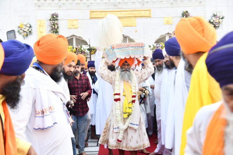 विराजमान प्रसंगी गुरुबाणीचे मंगल पठण, अरदास व कीर्तन करण्यात आले. यावेळी मोठ्या संख्येने भाविक उपस्थित होते. गुरुबाणीच्या मधुर स्वरांनी संपूर्ण परिसर आध्यात्मिकतेने भारावून गेला. भाविकांनी सर्व मर्यादांचे पालन करीत शिस्तबद्ध पद्धतीने दर्शन घेत गुरुग्रंथ साहिबांना नमन केले.