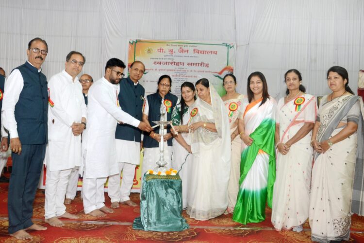छत्रपति संभाजीनगर :- पी. यु. जैन विद्यालयात प्रजासत्ताक दिनानिमित्त कुशल सुभाषचंद पाटनी आणि श्रीमती शोभा पाटनी यांच्या हस्ते ध्वजारोहण संपन्न झाले. प्रमुख अतिथी म्हणून जैन टॅग च्या उपाध्यक्ष सौ. उज्वला नवीनजी पाटनी, जैन शिक्षण संस्थेच्या सचिव सौ. आशादेवी देवेंद्रजी काला यांची उपस्थिती होती. जैन शिक्षण संस्थेचे अध्यक्ष महावीरजी सेठी कार्यक्रमाचे अध्यक्ष होते. 4थी च्या विद्यार्थ्यानी मंगलाचरण गीत सादर करुन प्रतिमा पूजनाने कार्यक्रमाची सुरुवात झाली. संस्था अध्यक्ष महावीर सेठी यांनी प्रास्ताविकातून शाळेच्या प्रगतिविषयी, नवीन योजनविषयी माहिती दिली. डॉ. होमी भाभा वैज्ञानिक परीक्षेत समर्थ विजय सुपेकर, भूगोल प्रज्ञाशोध परिक्षेत सुवर्णपदक प्राप्त करणाऱ्या अनन्या नितीन गांगवे, रामकृष्ण मिशन आश्रम उतारा पाठांतर स्पर्धेत तिसरा क्रमांक प्राप्त पुनम गवळी,तर ललित कला महोत्सव विभागीय स्तरावर द्वितीय पारितोषिक मिळवणारा समक्ष पिठोरे या विद्यार्थ्यांचा शाळेच्या वतीने सत्कार करण्यात आला. क्षितिजा महाले आणि पूनम गवळी यांनी प्रजासत्ताक दिनानिमित्त भाषण सादर केले. बालवाड़ीच्या विद्यार्थ्यानी ओम साई राम, स्वर्गात आकाशगंगा, संदेशे आते है गितावर नृत्य सादर केले. 1ली 2री च्या विद्यार्थ्यानी फिर भी दिल है हिंदुस्तानी, ही मायभूमी ही जन्मभूमि या गितावर कवायत सादर केली. लेझिम कवायत, डंबेल्स, रिंग कवायत, घुंगरू काठी, भारुड संगीतमय कवायतीचे सादरिकरण केले. धनसिंगजी शेरे यांनी ऐ मेरे वतन के लोगो या गितावर बासरिवादन केले. शाळेतुन संस्कार, शिस्त आणि राष्ट्रभक्ती यांचे बीजारोपण विद्यार्थ्यामध्ये केले जाते हे प्रशंसनीय आहे असे ध्वजारोहक कुशलजी पाटनी यांनी सांगितले, तर प्रत्येक व्यक्तीच्या जीवनात शेतकरी, सैनिक ,शिक्षक, आई-वडील आणि परमेश्वर यांचे महत्व असल्याने दररोज मुख्य अतिथि उज्वलाजी पाटनी यांनी सांगितले. महावीरजी सेठी यांच्या सामाजिक व धार्मिक कार्याची दखल घेत यांची बिनविरोधपने भारतवर्षीय दिगम्बर जैन महासभा राष्ट्रीय कार्यकारिणीत निवड, सुनीलजी सेठी यांची जैन इंजीनियर्स सोसायटी वेस्ट झोनच्या सेक्रेटरी पदावर निवड तर सौ. श्वेता राजेशजी कासलीवाल यांनी संभाजीनगर ते कुन्थलगिरी हे 185 किमी चे अंतर सायकल वर पार केल्यामुळे यांचा शालेतर्फे सत्कार करण्यात आला.