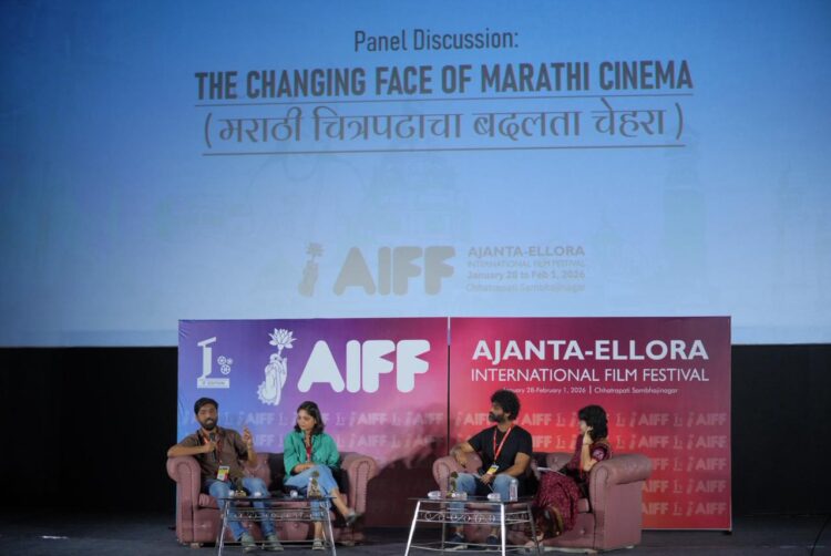 अजिंठा वेरूळ आंतरराष्ट्रीय चित्रपट महोत्सवाच्या दुसऱ्या दिवशी ‘मराठी चित्रपटांचा बदलता चेहरा’ या विषयावर आयोजित परिसंवादात मराठी सिनेमाच्या आशय, मांडणी, निर्मिती प्रक्रिया आणि प्रेक्षकांपर्यंत पोहोचण्याच्या आव्हानांवर सखोल चर्चा झाली. या परिसंवादात ‘साबरबोंड’चे दिग्दर्शक रोहन कानवडे, ‘आत्मपॅम्फ्लेट’चे दिग्दर्शक आशिष बेंडे आणि निर्माती तन्मयी देव सहभागी झाले होते. या परिसंवादाच्या संवादिका म्हणून नम्रता फलके यांनी काम पाहिले. यावेळी एमजीएम कॉलेज ऑफ कम्युनिकेशन, कल्चर अँड मीडियाच्या विद्यार्थ्यांनी तयार केलेल्या एमजीएम इन्सपायर या अंकाचे महोत्सव संयोजन समितीचे अध्यक्ष नंदकिशोर कागलीवाल यांच्या हस्ते विमोचन करण्यात आले.