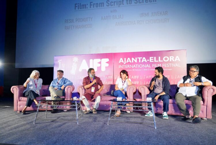 अजिंठा वेरूळ आंतरराष्ट्रीय चित्रपट महोत्सवात आज दुपारी आयनॉक्स, प्रोझोन मॉल येथे ‘सिनेमा : संहिता ते प्रदर्शन’ या विषयावर परिसंवादाचे आयोजन करण्यात आले होते. चित्रपट निर्मितीच्या विविध टप्प्यांतील सर्जनशील प्रक्रिया, त्यामागील अनुभव, संघर्ष आणि संवेदनशीलतेचा प्रवास या परिसंवादातून मान्यवरांनी उलगडला. या परिसंवादात ध्वनी संयोजक पद्मश्री रसूल पुकूट्टी, संकलक आरती बजाज, दिग्दर्शक अनिरूध्द रॉय चौधरी, छायाचित्रणकार राफे मेहमूद, पटकथा लेखक उर्मी जुवेकर हे सहभागी झाले होते. महोत्सव संचालक सुनिल सुखथणकर यांनी संवादक म्हणून काम पाहिले.