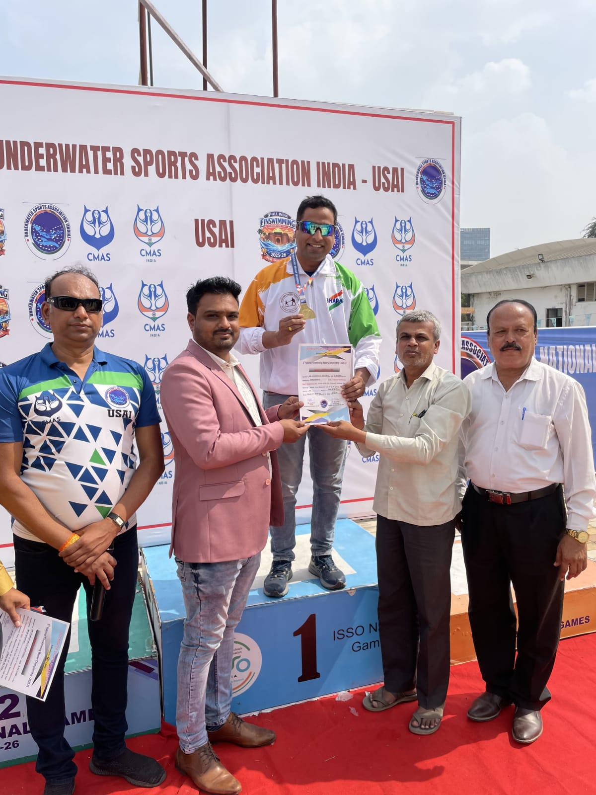 छत्रपती संभाजीनगर, दि.२ : अंडरवॉटर स्पोर्ट्स असोसिएशन इंडिया आयोजित दुसरी राष्ट्रीय मास्टर चॅम्पियनशिप आणि तिसरी राष्ट्रीय इंडोर फ्री डायव्हिंग चॅम्पियनशिप २०२५ -२६ शिवछत्रपती क्रीडा संकुल बालेवाडी पुणे येथे संपन्न झाली. या स्पर्धेमध्ये एमजीएम विद्यापीठाचे सहाय्यक प्राध्यापक डॉ.श्रीनिवास मोतीयेळे यांनी ५ पदके पटकावित राष्ट्रीय स्तरावर विद्यापीठाचे नांव उज्ज्वल केले आहे.