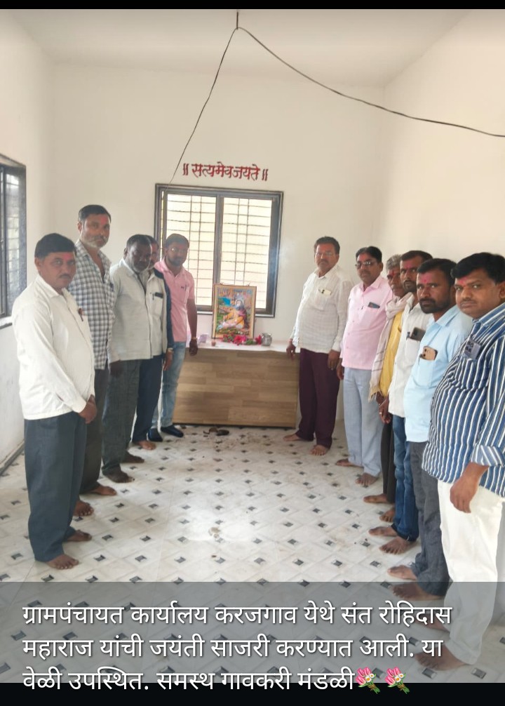 भोकरदन प्रतिनिधी :- भोकरदन तालुक्यातील करजगांव येथे सर्व गावकऱ्यांच्या वतीने ग्रामपंचायत कार्यालयामध्ये संत शिरोमणी गुरु रविदास जयंती मोठ्या उत्साहात साजरी करण्यात आली.