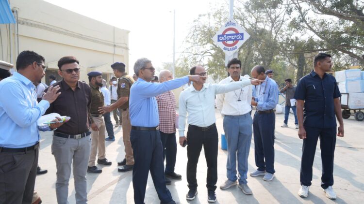 श्री संजय कुमार श्रीवास्तव ने अपना निरीक्षण आदिलाबाद रेलवे स्टेशन से आरंभ किया, जहाँ उन्होंने अमृत स्टेशन योजना के अंतर्गत चल रहे पुनर्विकास कार्यों की प्रगति भी देखी. उन्होंने क्रू लॉबी, कंबाइंड क्रू रनिंग रूम का भी निरीक्षण किया और रनिंग स्टाफ के लिए दी जाने वाली सुविधाओं की भी जांच की. श्री पायल शंकर, विधान सभा सदस्य (एमएलए), आदिलाबाद निर्वाचन क्षेत्र के विधायक ने महाप्रबंधक से भेंट की और अपने क्षेत्र में रेल विकास परियोजनाओं के बारे में चर्चा की. बाद में, कई जन प्रतिनिधियों ने महाप्रबंधक से भेंट की और अपने अनुरोध प्रस्तुत किए.