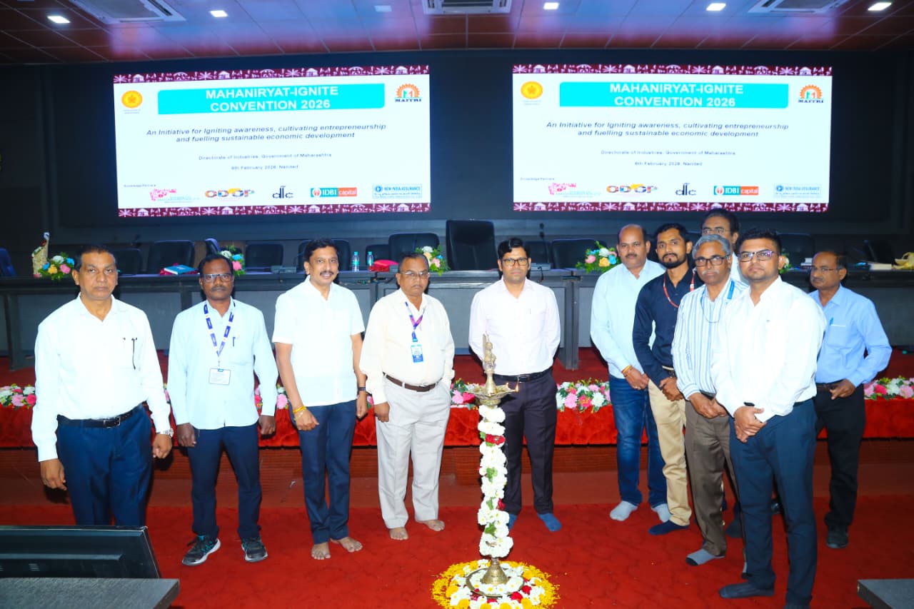 जिल्हाधिकारी कार्यालयाच्या नियोजन भवन येथे आज “महानिर्यात इग्नाईट कन्व्हेंशन २०२६” अंतर्गत आयोजित कार्यशाळेचे उद्घाटन जिल्हाधिकारी राहुल कर्डिले यांच्या हस्ते झाले. या कार्यशाळेस जिल्हा उद्योग केंद्राचे महाव्यवस्थापक अमोल इंगळे, डाक विभागाचे अधिकारी अक्षय कुलकर्णी, न्यू इंडिया इन्शुरन्स कंपनीचे चांगदेव शेळके, महाराष्ट्र ग्रामीण बँकेचे अधिकारी पी. डी. मुळे, जिल्हा अग्रणी बँक अधिकारी श्री. सोनकांबळे, ए.यू. स्मॉल फायनान्स बँकेचे व्यवस्थापक अमरजितसिंघ, भारतीय स्टेट बँकेचे अधिकारी सौरभ कुमार, नांदेड जिल्हा औद्योगिक संघटनेचे अध्यक्ष हर्षद शहा, आनंद बिडवई, निर्यातदार निलेश देशमुख तसेच निर्यातक्षम उद्योगांचे उद्योजक, नवउद्योजक व विविध शासकीय विभागांचे प्रमुख उपस्थित होते.