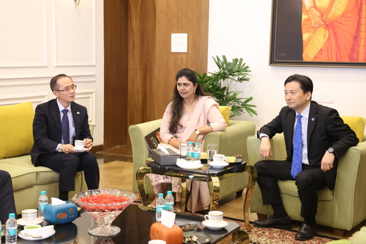 पर्यावरण व वातावरणीय बदल तसेच पशुसंवर्धन मंत्री पंकजाताई मुंडे यांच्या ‘रामटेक’ या शासकीय निवास्थानी झालेल्या या बैठकीला जपानच्या सागा प्रांताच्या शिष्टमंडळाचे नेतृत्व सागा प्रांताचे गव्हर्नर योशिनोरी यामागुची यांनी केले. त्यांच्यासमवेत प्रादेशिक देवाणघेवाण विभागाचे उपमहासंचालक मसाहिरो ओनो, आंतरराष्ट्रीय धोरण गटाचे उपसंचालक कोजी योशिताके, प्रकल्प प्रमुख कोकी कनामारू आणि जेट्रो सागाचे मुख्य संचालक हिरोशी योनेयामा उपस्थित होते.