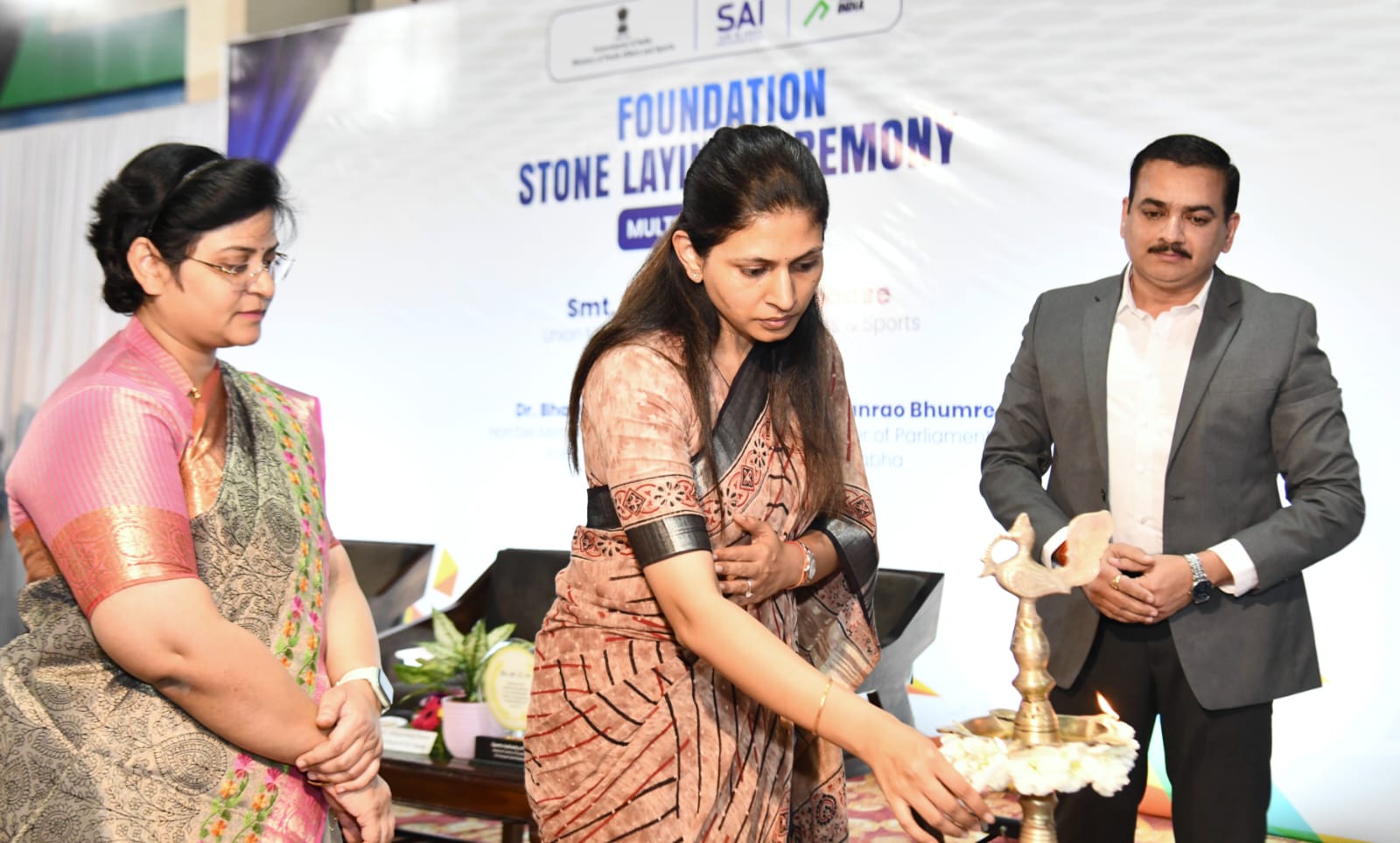 स्पोर्ट्स ऑथॉरिटी ऑफ इंडिया (SAI) च्या नॅशनल सेंटर ऑफ एक्सलन्स येथे प्रस्तावित ‘खेलो इंडिया मल्टिपर्पज हॉल’च्या भूमिपूजन समारंभाला त्या उपस्थित होत्या. यावेळी आयसीआयसीआय फाउंडेशनच्या सीएसआर उपक्रमांतर्गत उपलब्ध करून देण्यात आलेल्या उच्च दर्जाच्या क्रीडा विज्ञान उपकरणांचे लोकार्पण त्यांच्या हस्ते करण्यात आले. या यावेळी आयसीआयसीआय बँकेचे झोनल हेड अभिजीत सिंग पवार, मासिया (MASSIA) अध्यक्ष अर्जुन गायकवाड, स्पोर्ट्स ऑथॉरिटी ऑफ इंडियाच्या उपसंचालक डॉ. मोनिका घुगे यांच्यासह वरिष्ठ अधिकारी व विविध क्षेत्रांतील मान्यवर उपस्थित होते.