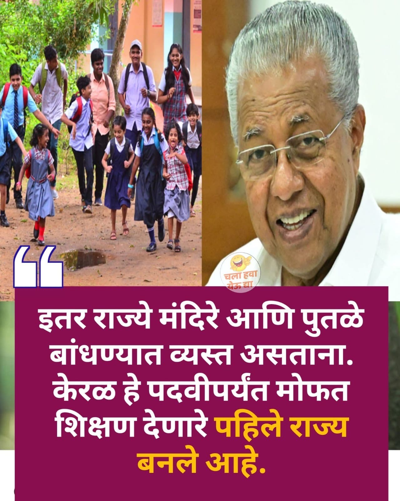आज इतर अनेक राज्यांमध्ये हजारो कोटी रुपये पुतळ्यांवर खर्च होत आहेत. त्या पुतळ्यांची उंची जितकी वाढते, तितकी सामान्य माणसाच्या प्रश्नांची खोली वाढत जाते. बेरोजगारी, कुपोषण, शाळाबाह्य मुलं, गळती (ड्रॉपआउट), शिक्षणातील असमानता, हे प्रश्न मात्र तसेच राहतात. कारण प्राधान्यक्रम चुकलेला आहे. केरळने तो प्राधान्यक्रम बरोबर ओळखला आहे. पदवीपर्यंत मोफत शिक्षण म्हणजे केवळ फी माफ करणे नाही; तो सामाजिक न्यायाचा निर्णय आहे. हा निर्णय सांगतो की शिक्षण ही कोणाची मक्तेदारी नाही. तो सांगतो की गरीबाचा मुलगाही डॉक्टर, अभियंता, संशोधक, प्रशासक होऊ शकतो. तो सांगतो की मुलींचं शिक्षण खर्चामुळे अर्धवट थांबणार नाही. हा निर्णय म्हणजे पिढ्यांच्या दारिद्र्याच्या साखळ्या तोडण्याचा प्रयत्न आहे.
