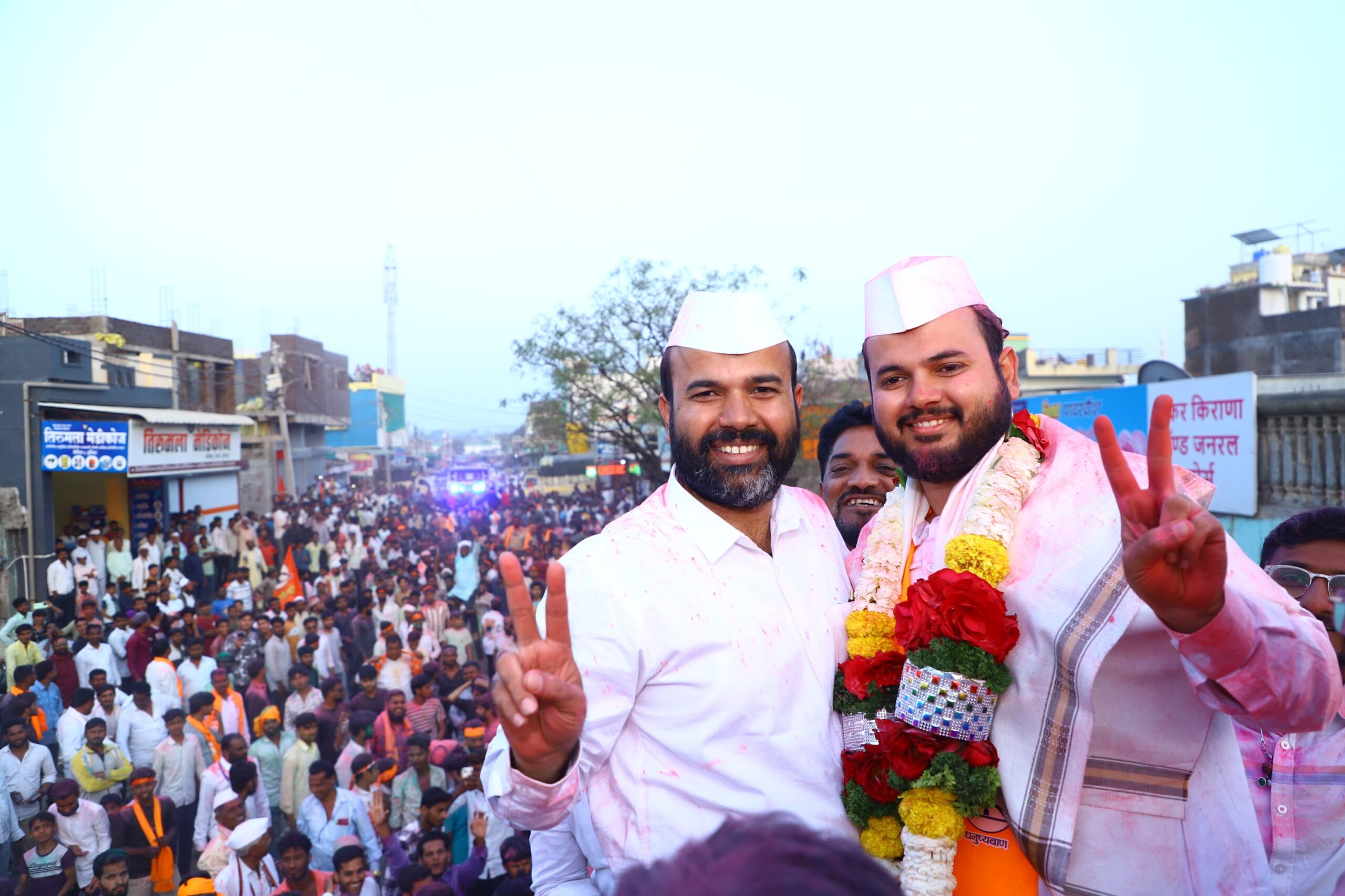 निकाल जाहीर होताच गावातील नागरिक, युवक व महिला मोठ्या संख्येने रस्त्यावर उतरले. ढोल-ताशांचा गजर, फटाक्यांची आतषबाजी आणि घोषणांनी संपूर्ण अंभई गाव दुमदुमून गेले. विजयी रॅलीत जय भवानी, जय शिवाजी,“आमदार अब्दुल सत्तार आगे बढो” , अशा घोषणा देण्यात आल्या.