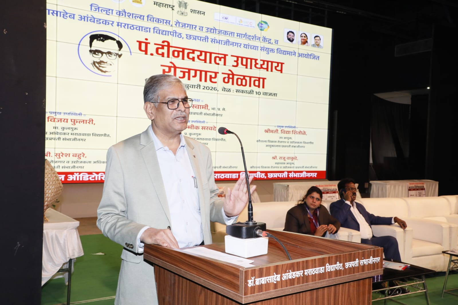 जिल्हा कौशल्य विकास, रोजगार व उद्योजकता मार्गदर्शन केंद्र व डॉ. बाबासाहेब आंबेडकर मराठवाडा विद्यापीठ, छत्रपती संभाजीनगर यांच्या संयुक्त विद्यमाने आज पंडीत दीनदयाल उपाध्याय रोजगार मेळावा आयोजित करण्यात आला. या मेळाव्याचे उद्घाटन जिल्हाधिकारी दिलीप स्वामी यांच्या हस्ते करण्यात आले. कुलगुरु डॉ. विजय फुलारी या मेळाव्याच्या अध्यक्षस्थानी होते. मेळाव्यास पदविका, पदवी व पदव्यूत्तर पदवीधारक उमेदवार मोठ्या संख्येने उपस्थित होते.