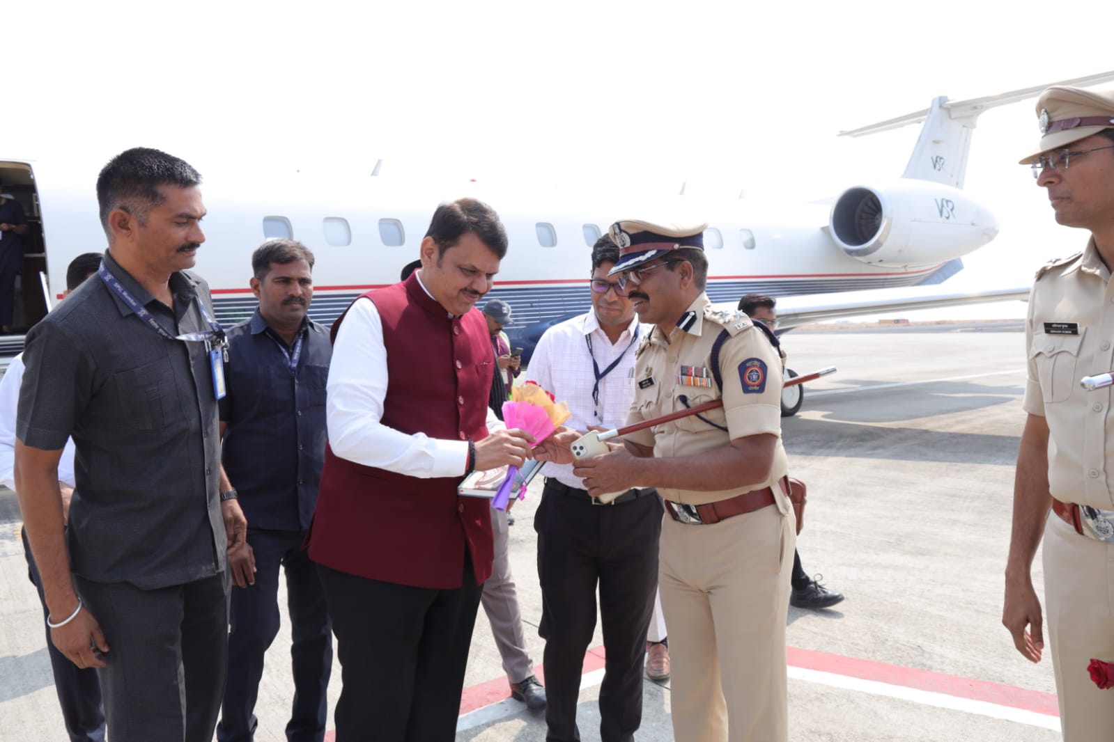 मुख्यमंत्री देवेंद्र फडणवीस यांचे आगमन प्रसंगी आमदार राजेश पवार, महापौर कविता मुळे, उपमहापौर दीपकसिंह रावत, नांदेड परिक्षेत्र पोलीस उपमहानिरीक्षक शहाजी उमाप, जिल्हाधिकारी राहुल कर्डिले, पोलीस अधीक्षक अबिनाश कुमार तसेच महानगरपालिका आयुक्त डॉ. महेशकुमार डोईफोडे आदी मान्यवर उपस्थित होते.