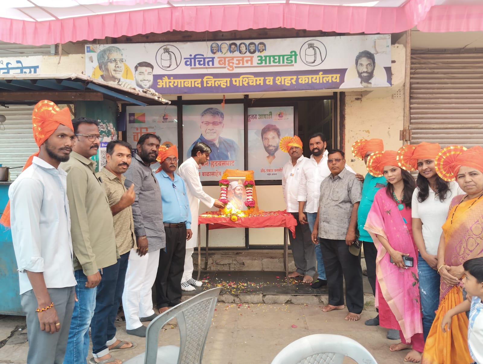 छत्रपती संभाजी नगर (प्रतिनिधी)वंचित बहुजन आघाडीच्या वतीने शिवजयंती २०२६ निमित्त शिवजयंती उत्सव समिती घोषित करण्यात आली होती .शिवजयंती उत्सव समितीचे अध्यक्ष सतीश भाऊ गायकवाड उपाध्यक्ष भावी गवई यांनी छत्रपती शिवाजी महाराज यांच्या प्रतिमेला पुष्पहार घालून अभिवादन केले यावेळी पश्चिम जिल्ह्याचे अध्यक्ष रूपचंद गाडेकर पश्चिम शहराचे अध्यक्ष पंकज बनसोडे महिला अध्यक्ष साधनाताई पठारे नगरसेवक करुणा मेघानंद जाधव गणेश खोतकर, रवी रत्नपारखे ,मुक्तार सय्यद ,शहर उपाध्यक्ष मेघानंद जाधव, सह असंख्य पदाधिकारी कार्यकर्ते उपस्थित होते.